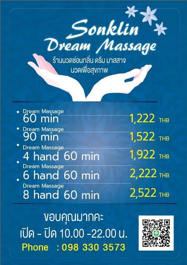 ที่ Sonklin Dream Massage ทุกช่วงเวลาการนวดถูกสร้างสรรค์ขึ้นอย่างพิถีพิถัน เพื่อมอบความสบายอย่างแท้จริง — นุ่มนวล สงบ และน่าจดจำ